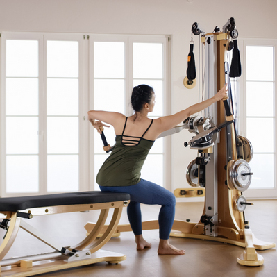 The Ultima XS is the most versatile Pulley Tower Unit available, offering all of the standard features of the Ultima® plus additional customizations, and all GYROTONER Handle Unit settings.